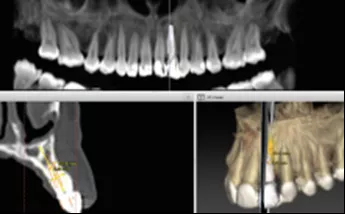 Мал. 2: КТ показує потребу в негайному встановленні імпланта на 10 зубі.