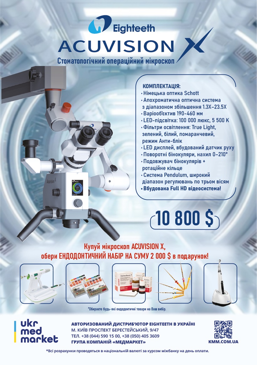 Даруємо ендодонтичні матеріали на суму 2000$ при купівлі мікроскопу Acuvision X від Eighteeth