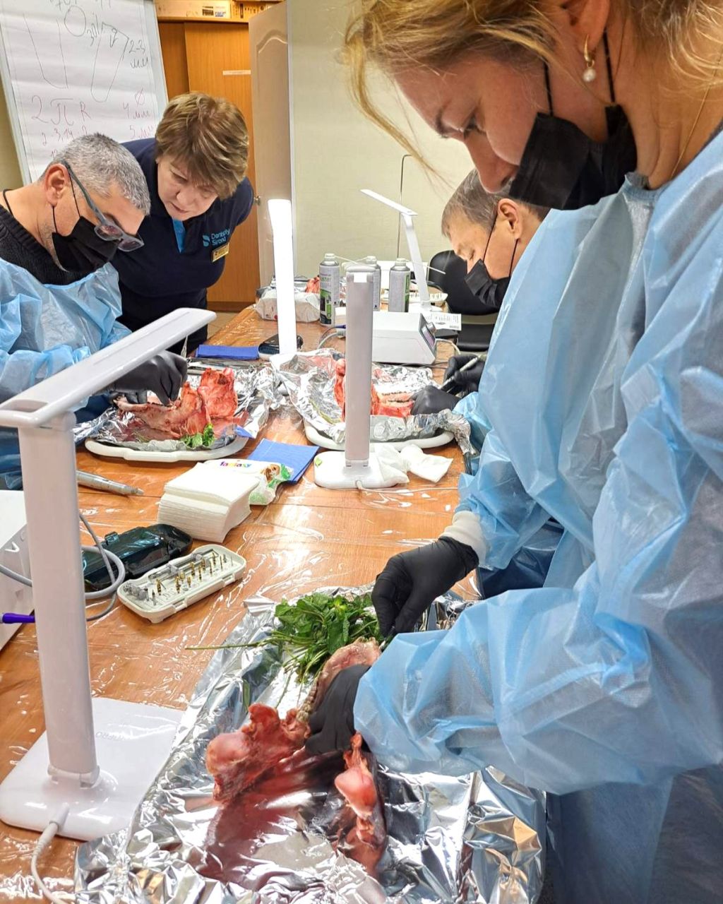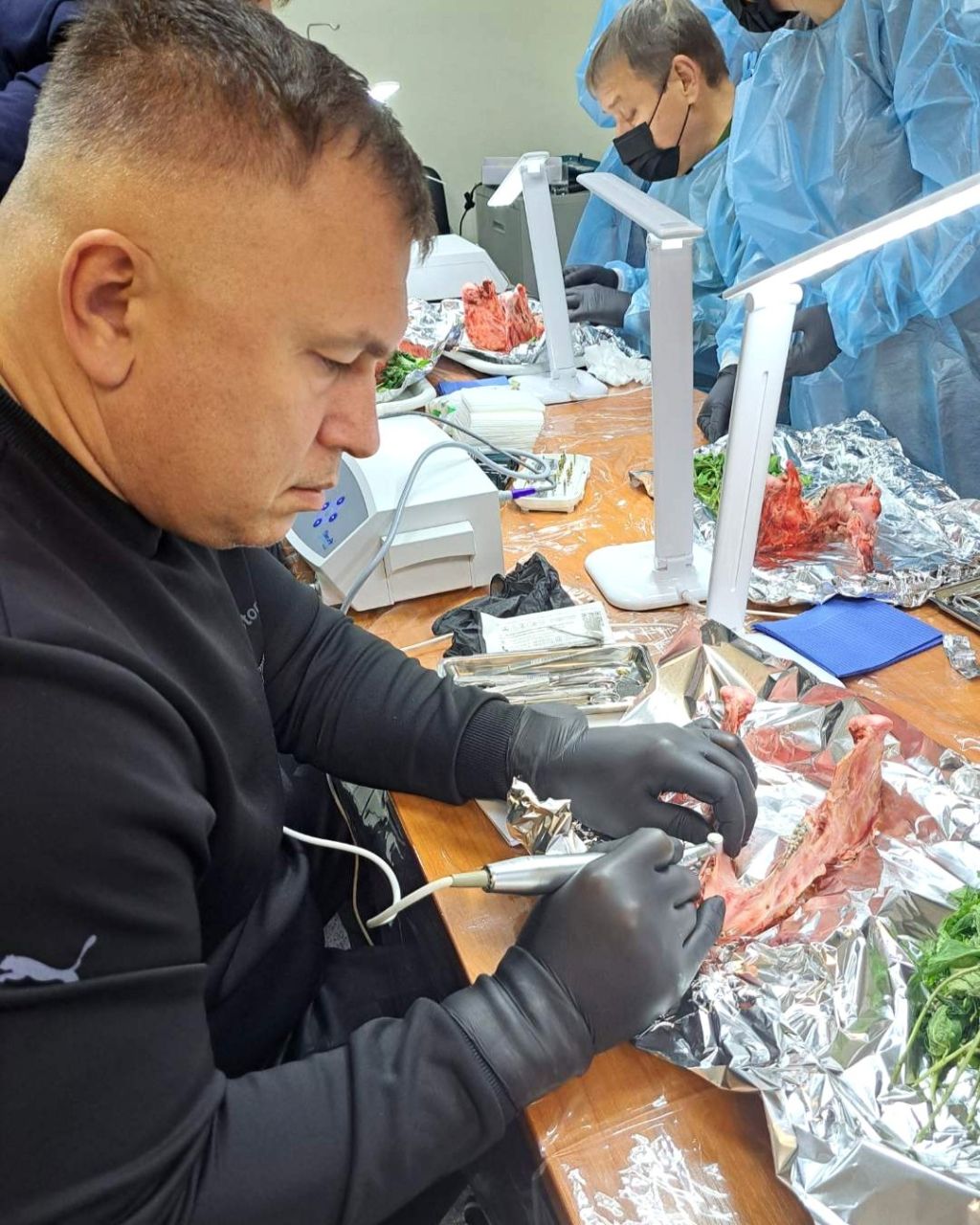 Захід складався з теоретичного блоку з демонстрацією клінічних кейсів та практичної частини на свинячих щелепах. Учасники відпрацювали техніки мінімально інвазивного встановлення імплантатів, методики збереження м’яких тканин і підходи до роботи в умовах складної анатомії. Окрему увагу приділили комунікації з пацієнтом щодо вибору альтернативних клінічних рішень.