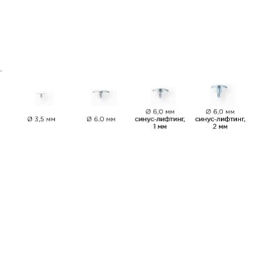 6.0мм для синус-ліфтингу 1мм та 2мм: для фіксації імплантатів до пластин для остеосинтезу після одноетапного синус-ліфтингу ( для встановлення використовується шестигранна викрутка 1.0мм.)