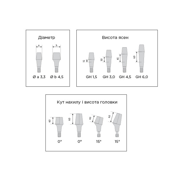 • Легко адаптувати залежно від клінічної ситуації завдяки наявності чотирьох варіантів висоти ясен т..
