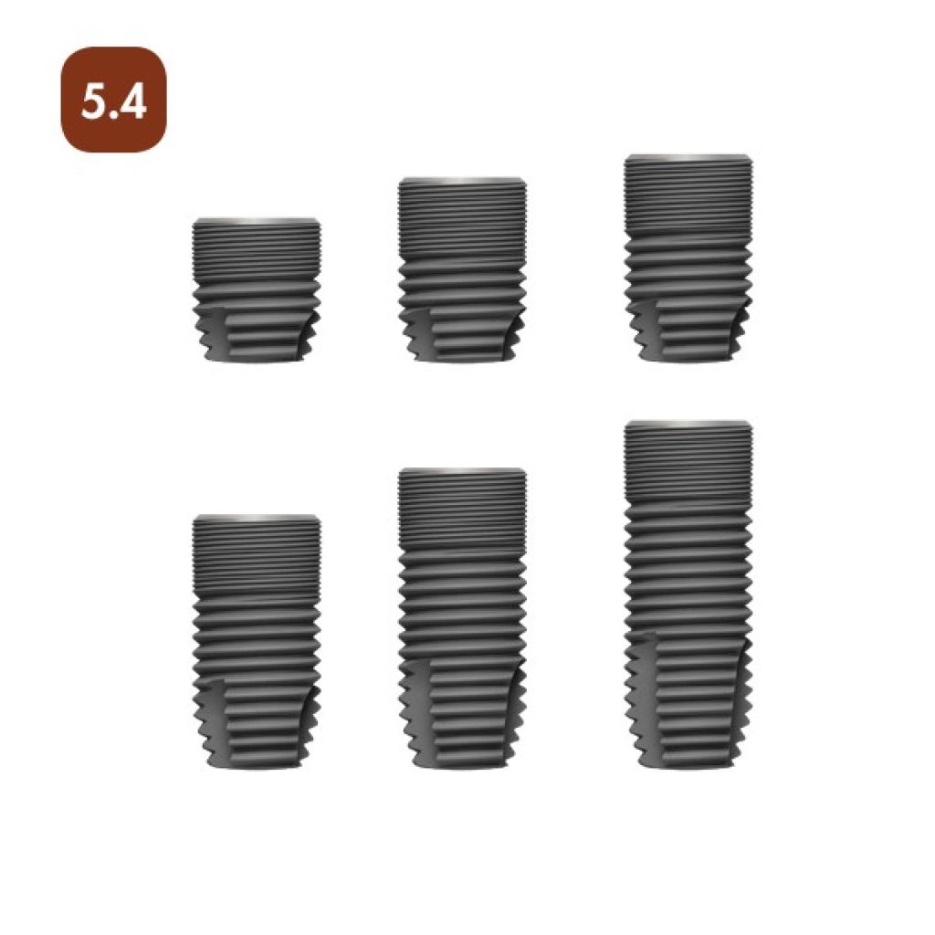 Імплантати доступні у широкому діапазоні форм, діаметрів та довжин, в тому числі для ситуацій з обмеженим доступним простором і(або) кількістю кісткової тканини.