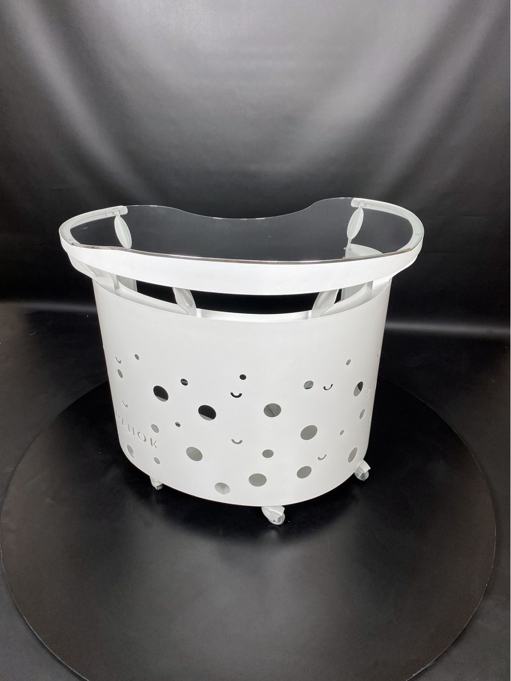 Столик медичний ПАНОК- 2 овальний розроблений спеціально для стоматологічного прийому і призначений для лікарів-стоматологів, які працюють сидячи за столиком. Стільниця столика виконана з розжарюваного скла.