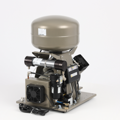 Безоливний компресор EKOM серії DK50 2V є джерелом чистого, безоливного стисненого повітря, призначеного для приведення в рух зубоврачебних приборів і пристроїв. По своїм технічним параметрам і розмірам резервуару повітря об'ємом 25 л, компресор цього типу може обслуговувати два комплекса стоматологічних пристроїв, або обладнання в зубопротезних лабораторіях. Стиснене повітря, створене безоливним компресором вказаного типу, забезпечує високу ступінь дотримання гігієни і якості праці стоматолога, не створюючи, притому, навколо себе середовище, що містить чужорідні речовини. Призначений для двох стоматологічних установок. Дана модель з мембранним осушувачем.