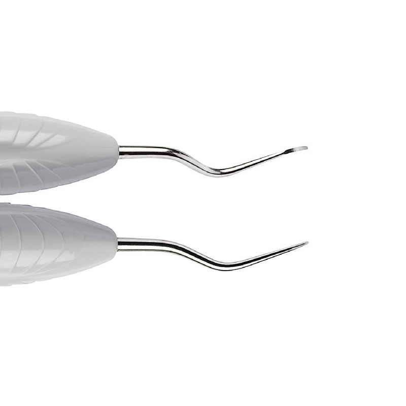 Серповидний скейлер для зняття надясенного каменю на всіх поверхнях зубів. Ефективний у міжзубни..